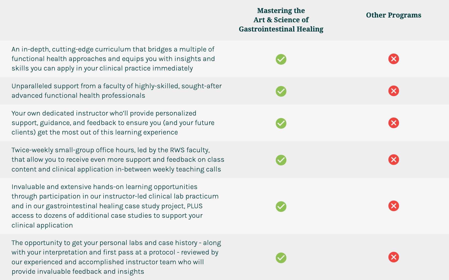 Mastering the Art & Science of Gastrointestinal Healing is a 12-week course offered twice a year - in March and in September - and includes:
