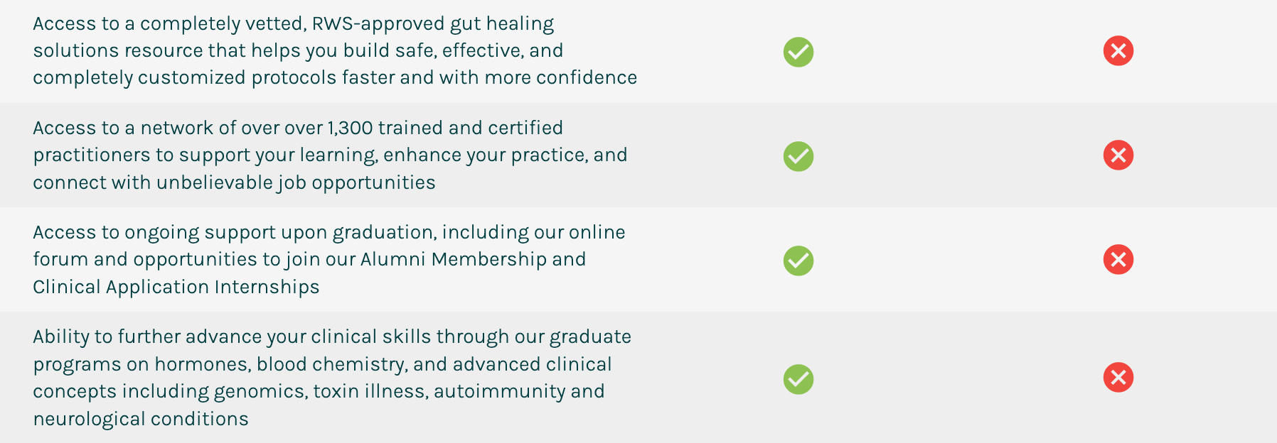 “I am living proof that my own healing had to start with my gut and from there it opened up a world of possibilities and the opportunity to thrive again. Seeing the depth that RWS goes into on the gut and the healing ability the gut has...I just knew I needed to get my hands on the curriculum to deepen my practice and help heal more people.”